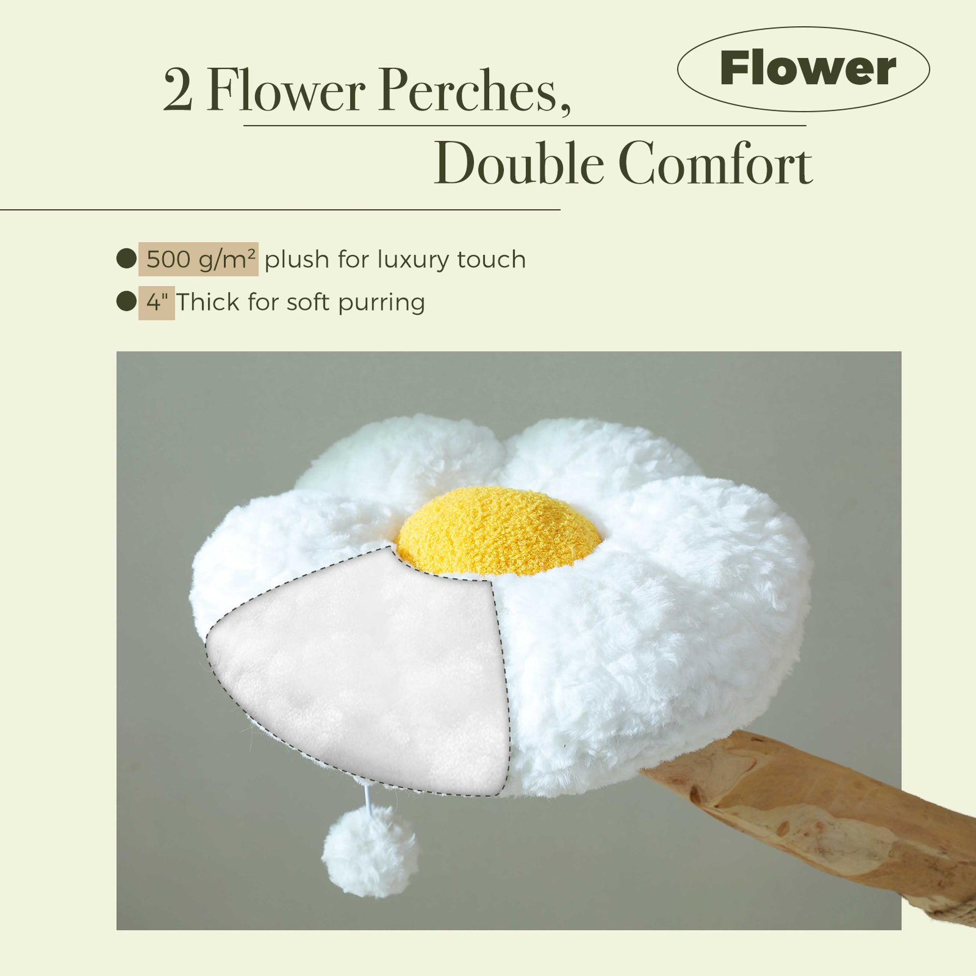 LUJO ENCUENTRA DISEÑO MODERNO: Este moderno árbol para gatos de 150 cm (59 pulgadas) combina ramas de peral naturales, una cesta de dormir trenzada a mano, dos plataformas en forma de flor, una acogedora hamaca y una cueva de sueño inferior, todo envuelto en suave forro de felpa blanca como las nubes. Su gato se sentirá como si estuviera acostado en nubes, mientras que el elegante diseño complementa perfectamente su decoración y le da un toque lujoso a su hogar.
