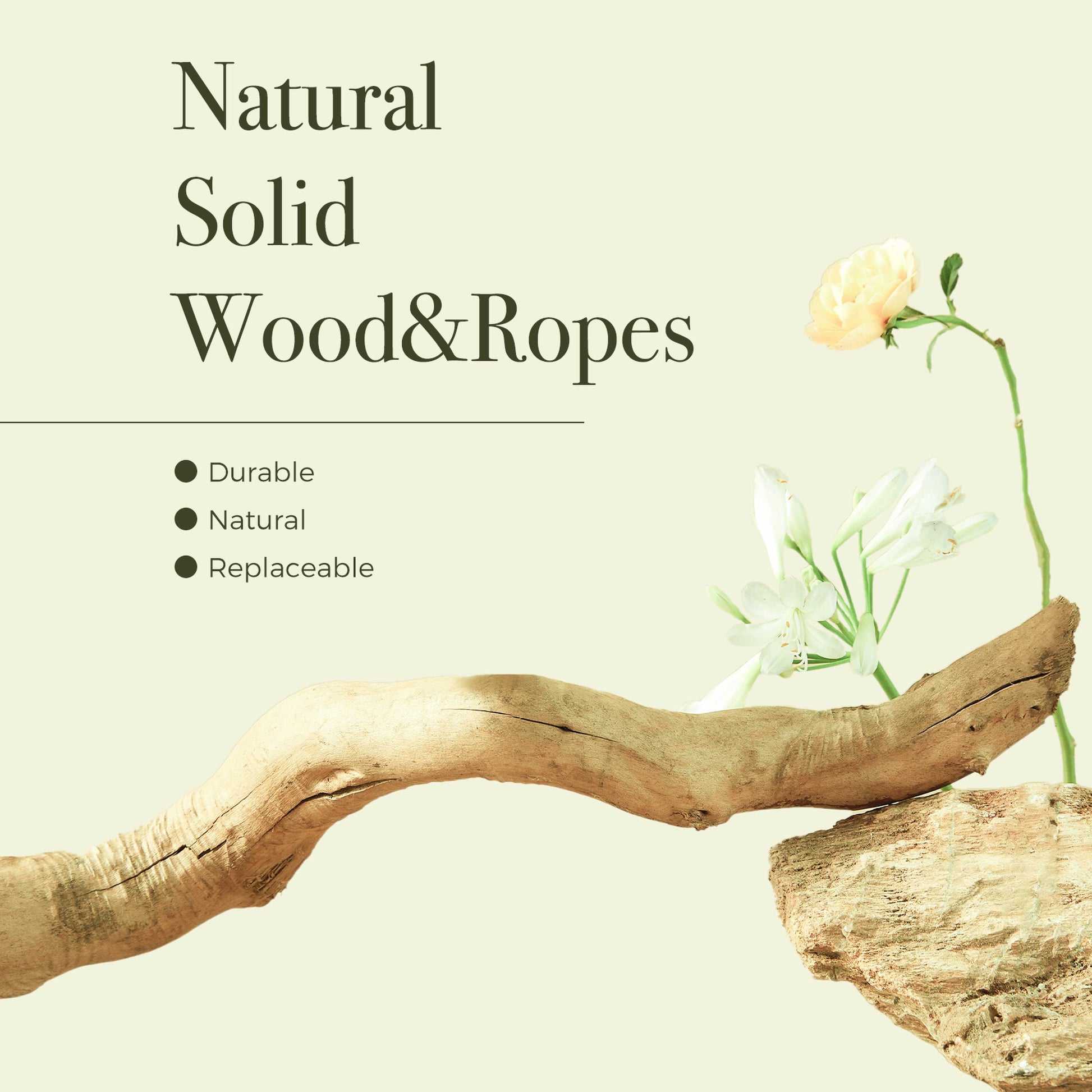 MATERIALES PREMIUM – DURABILIDAD Y CONFORT: Fabricado con madera maciza natural con un tronco de peral robusto y recubrimiento de sisal para una resistencia extrema. La felpa ultra suave (500 g/m²) proporciona superficies de descanso acogedoras. Una verdadera torre de madera que combina seguridad y diversión.