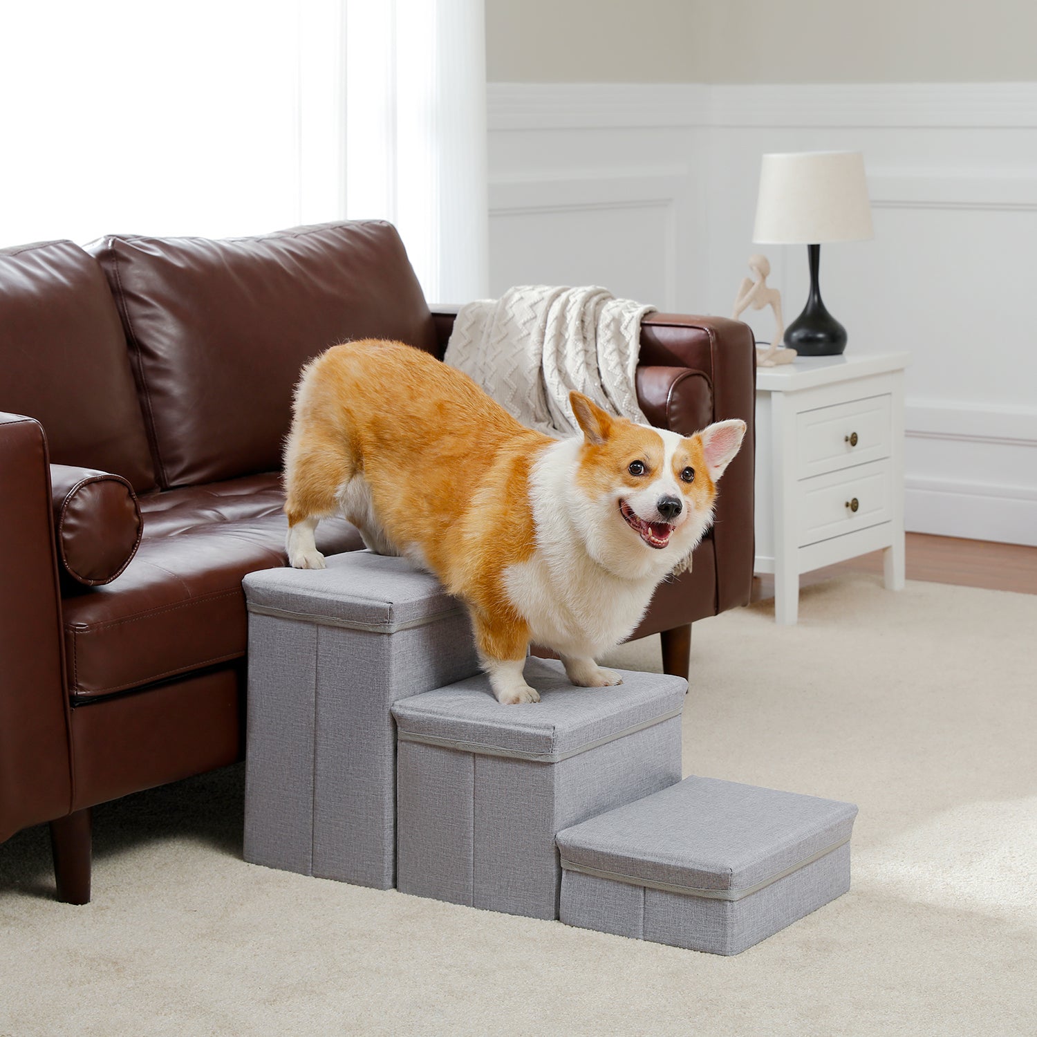PETEPELA escaleras para perros con 3 compartimentos de almacenamiento – Plegable | escalera de seguridad antideslizante para perros y gatos | 3 niveles
